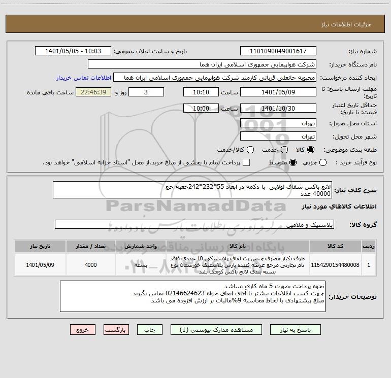 نام دستگاه خریدار:شرکت هواپیمایی جمهوری اسلامی ایران هما