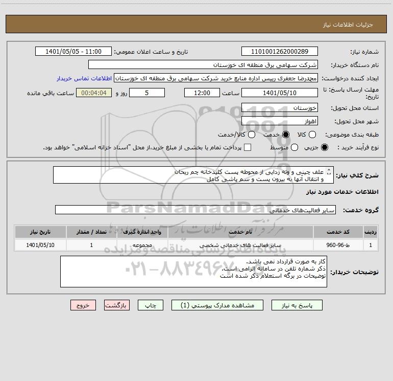 استعلام علف چینی و وته زدایی از محوطه پست کلیدخانه چم ریحان و انتقال آنها به بیرون پست و سم پاشی کامل, استعلام علف چینی و وته زدایی از محوطه پست کلیدخانه چم ریحان و انتقال آنها به بیرون پست و سم پاشی کامل