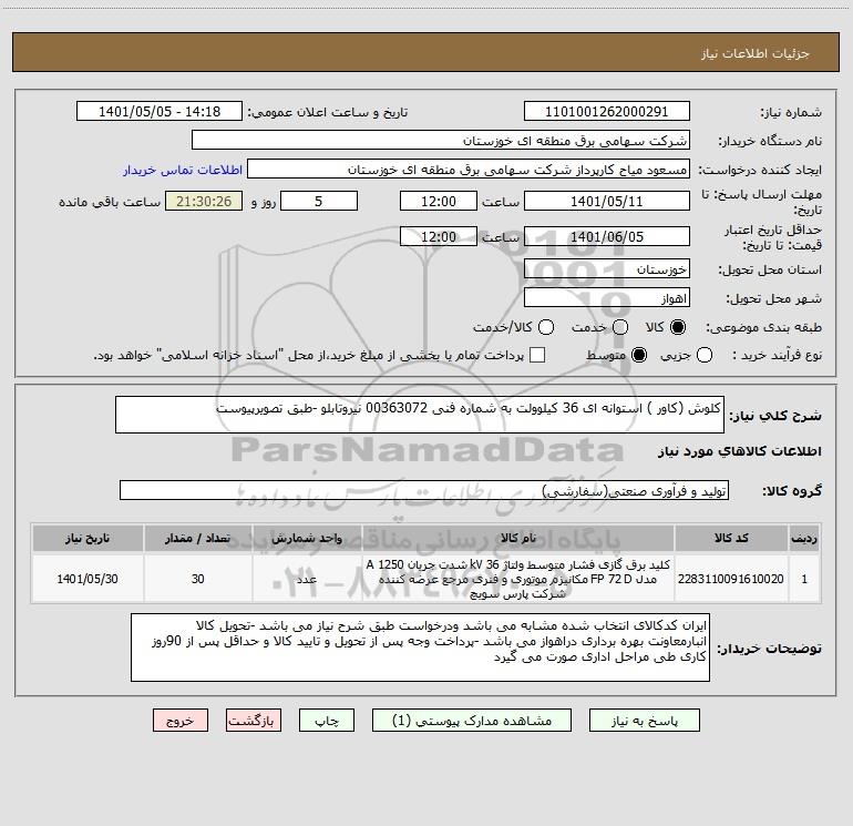 نام دستگاه خریدار:شرکت سهامی برق منطقه ای خوزستان