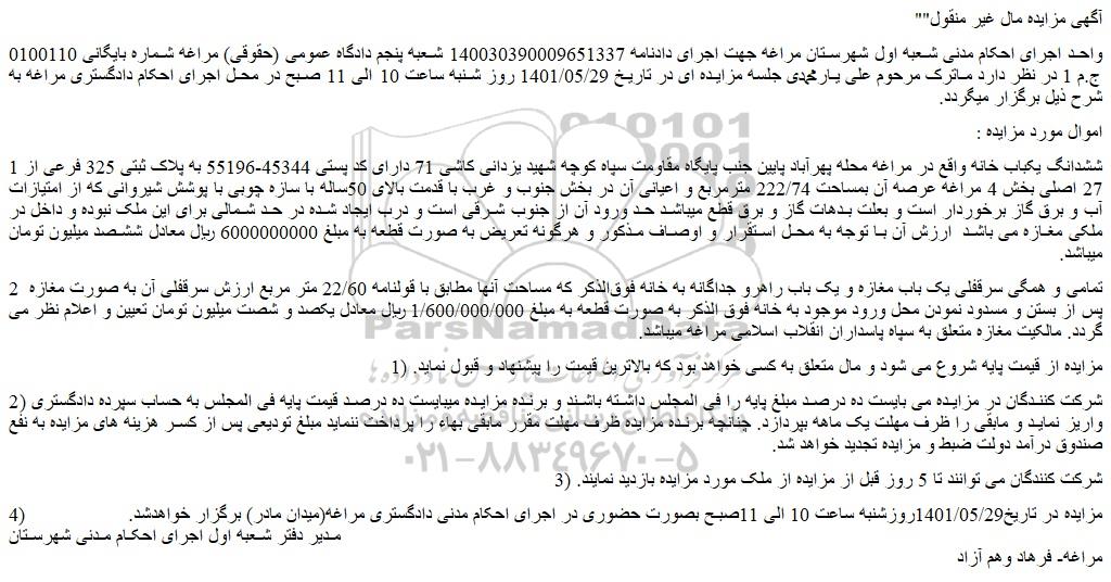 "آگهی مزایده مال غیر منقول"