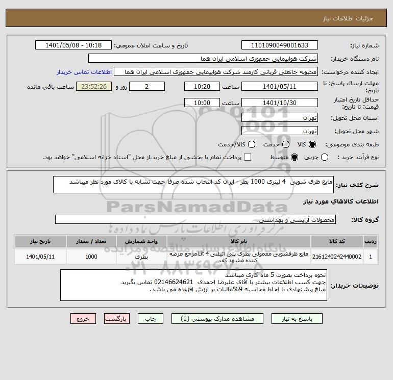 استعلام مایع ظرف شویی 4 لیتری 1000 بطر - ایران کد انتخاب شده صرفا جهت تشابه با کالای مورد نظر میباشد, استعلام مایع ظرف شویی 4 لیتری 1000 بطر - ایران کد انتخاب شده صرفا جهت تشابه با کالای مورد نظر میباشد