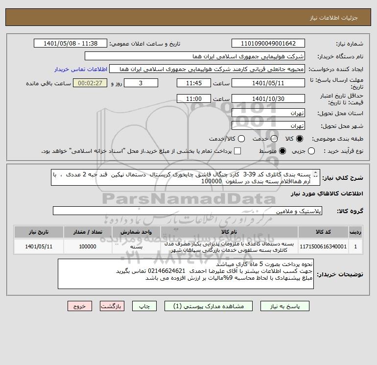 نام دستگاه خریدار:شرکت هواپیمایی جمهوری اسلامی ایران هما
