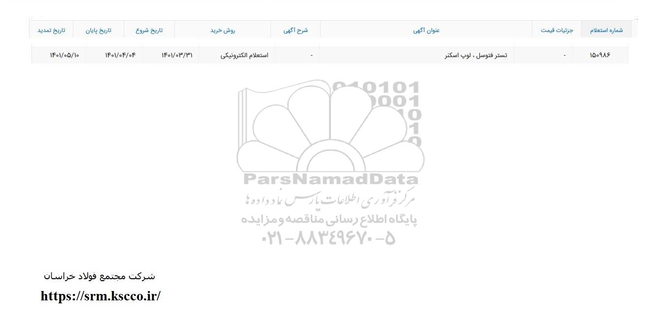 برای شرکت در مناقصه حتما از تصویر آگهی در سایت پارس نماد داده ها استفاده نمایید