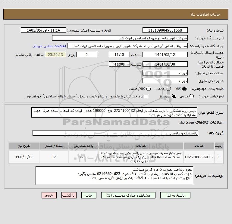 نام دستگاه خریدار:شرکت هواپیمایی جمهوری اسلامی ایران هما