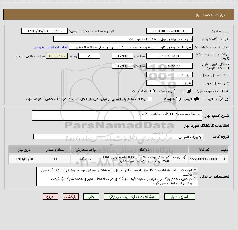 استعلام سانترال سیستم حفاظت پیرامونی 8 زون, استعلام سانترال سیستم حفاظت پیرامونی 8 زون