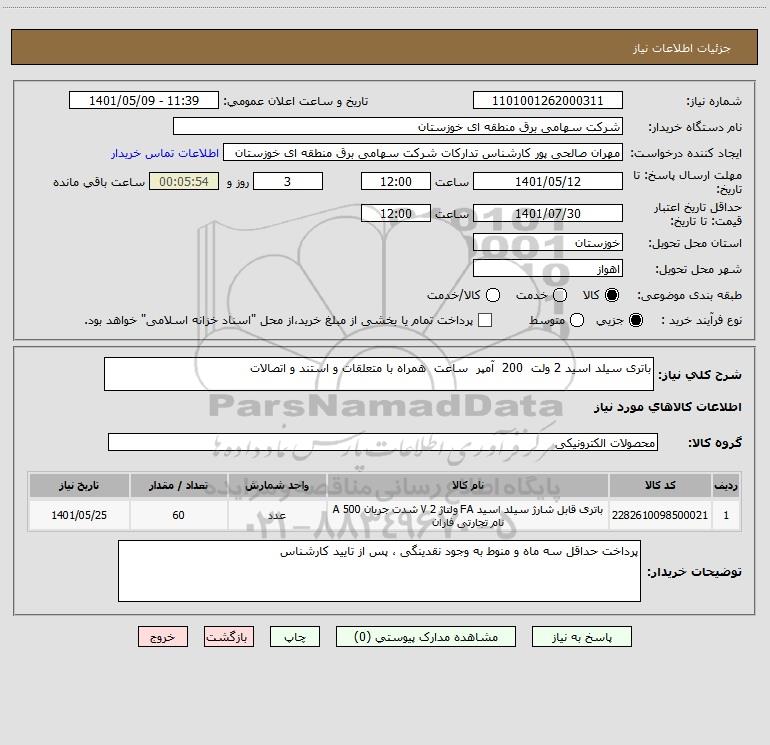 نام دستگاه خریدار:شرکت سهامی برق منطقه ای خوزستان