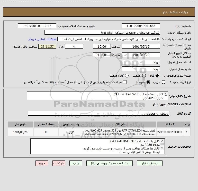 نام دستگاه خریدار:شرکت هواپیمایی جمهوری اسلامی ایران هما
