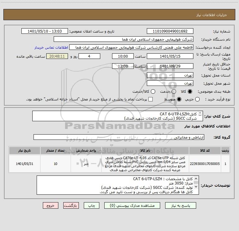 نام دستگاه خریدار:شرکت هواپیمایی جمهوری اسلامی ایران هما