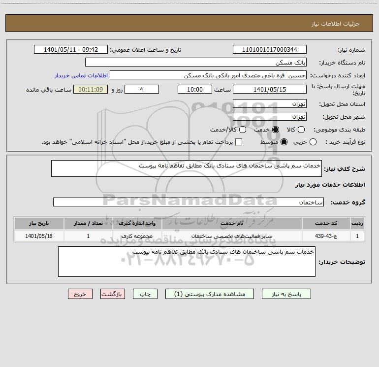 شرح کلی نیاز: خدمات سم پاشی ساختمان های ستادی بانک مطابق تفاهم نامه پیوست