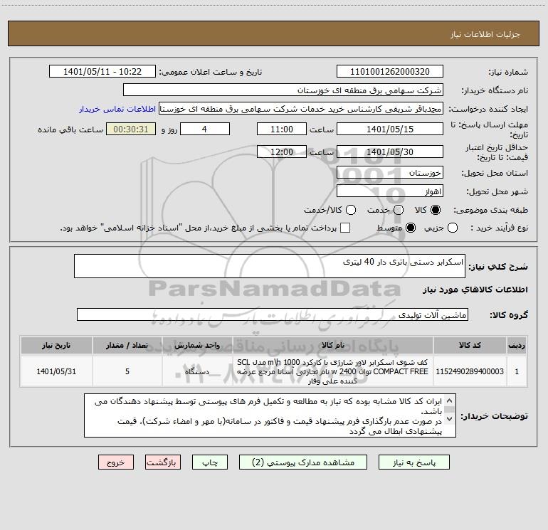شرح کلی نیاز: اسکرابر دستی باتری دار 40 لیتری