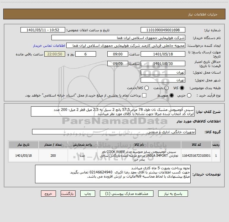 نام دستگاه خریدار:شرکت هواپیمایی جمهوری اسلامی ایران هما