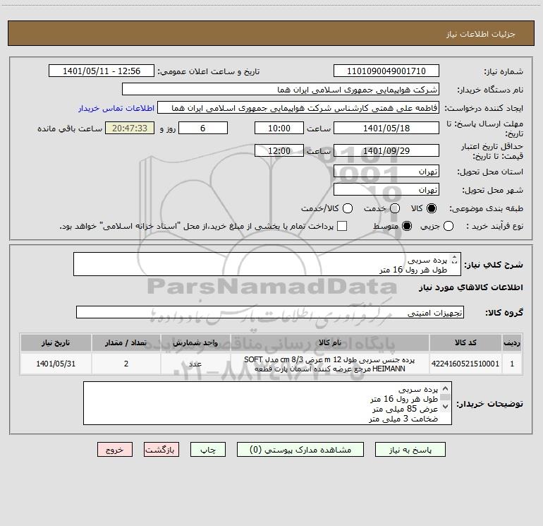 نام دستگاه خریدار:شرکت هواپیمایی جمهوری اسلامی ایران هما