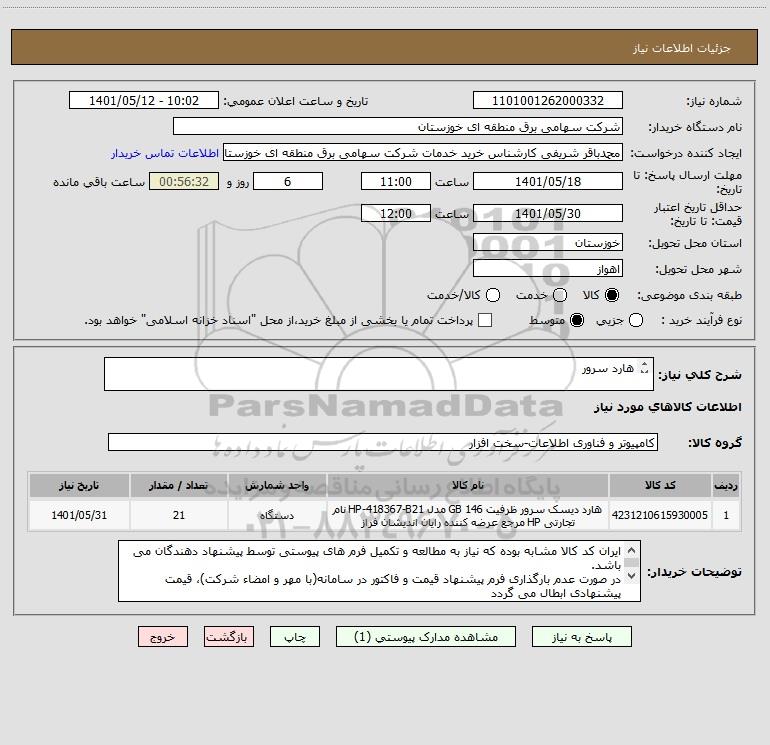 نام دستگاه خریدار:شرکت سهامی برق منطقه ای خوزستان