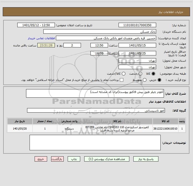 استعلام آنلودر چیلر طبق پیش فاکتور پیوست(ایران کد مشابه است), استعلام آنلودر چیلر طبق پیش فاکتور پیوست(ایران کد مشابه است)
