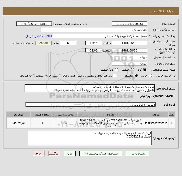 شرح کلی نیاز: تجهیزات زیر ساخت غیر فعال مطابق قرارداد پیوست.