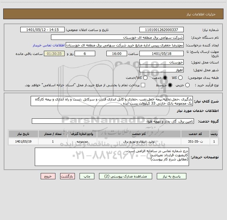 نام دستگاه خریدار:شرکت سهامی برق منطقه ای خوزستان