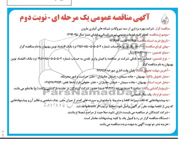 موضوع مناقصه : انجام کلیه خدمات عمومی نیروی انسانی و فضای سبز سال 95-94