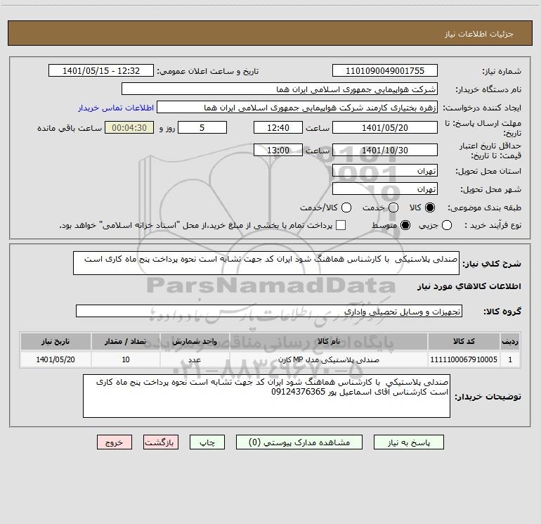 شرح کلی نیاز: صندلی پلاستیکی با کارشناس هماهنگ شود ایران کد جهت تشابه است نحوه پرداخت پنج ماه کاری است