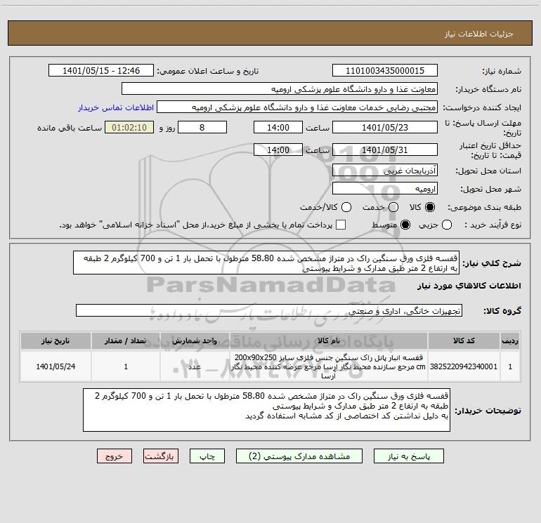 استعلام قفسه فلزی ورق سنگین راک در متراژ مشخص شده 58.80 مترطول با تحمل بار 1 تن و 700 کیلوگرم 2 طبقه به ارتفاع 2 متر طبق مدارک و شرایط پیوستی, استعلام قفسه فلزی ورق سنگین راک در متراژ مشخص شده 58.80 مترطول با تحمل بار 1 تن و 700 کیلوگرم 2 طبقه به ارتفاع 2 متر طبق مدارک و شرایط پیوستی