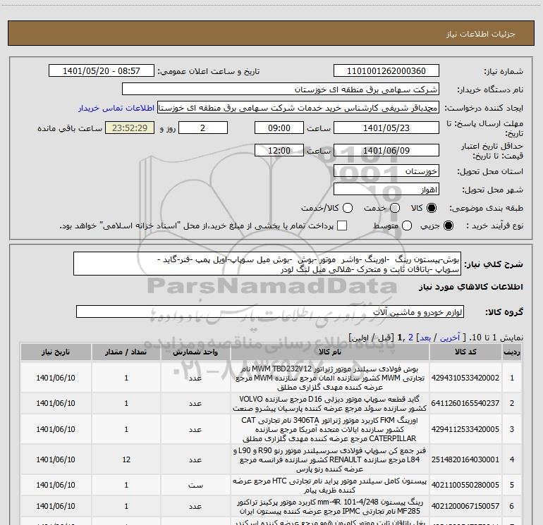 نام دستگاه خریدار:شرکت سهامی برق منطقه ای خوزستان