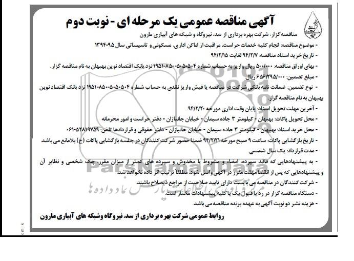 مناقصه گزار: شرکت بهره برداری از سد، نیروگاه و شبکه های آبیاری مارون