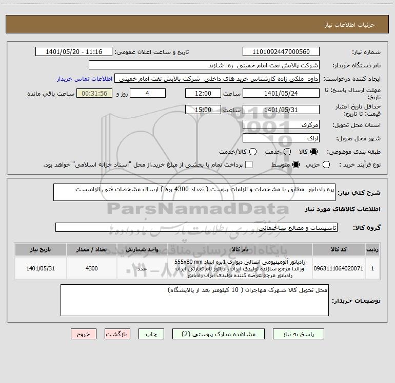 نام دستگاه خریدار:شرکت پالایش نفت امام خمینی ره شازند