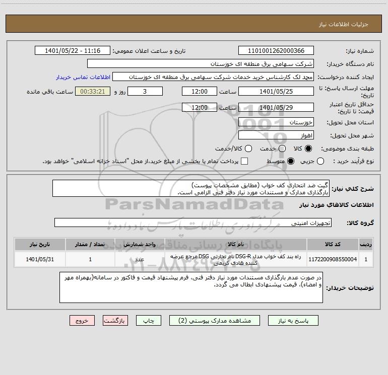 نام دستگاه خریدار:شرکت سهامی برق منطقه ای خوزستان