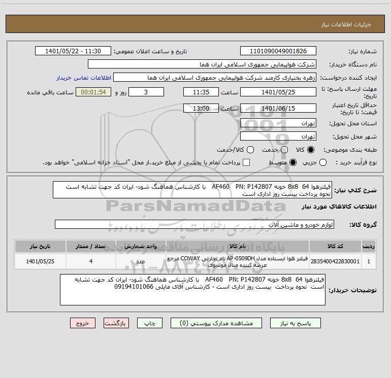نام دستگاه خریدار:شرکت هواپیمایی جمهوری اسلامی ایران هما