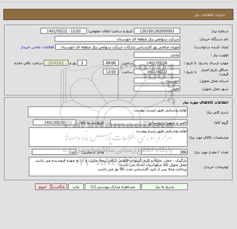 شرح کلی نیاز: لوازم روشنایی طبق لیست پیوست
