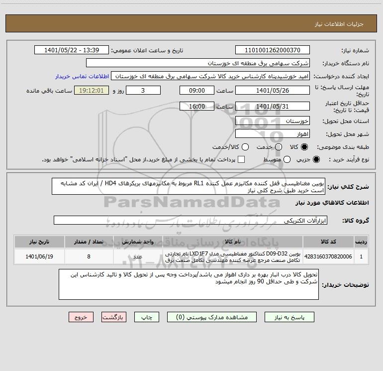 نام دستگاه خریدار:شرکت سهامی برق منطقه ای خوزستان