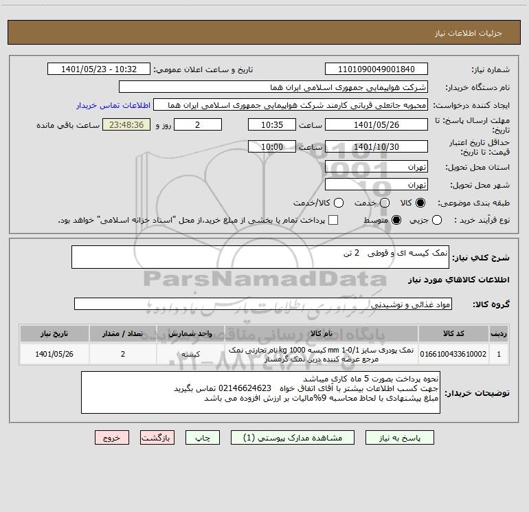 استعلام نمک کیسه ای و قوطی 2 تن, استعلام نمک کیسه ای و قوطی 2 تن