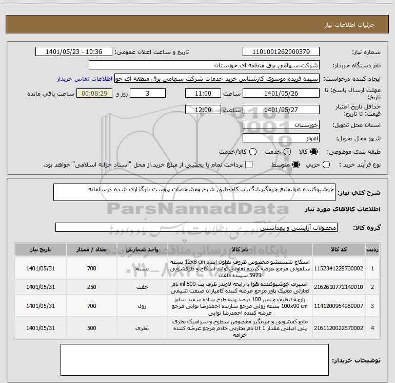 نام دستگاه خریدار:شرکت سهامی برق منطقه ای خوزستان