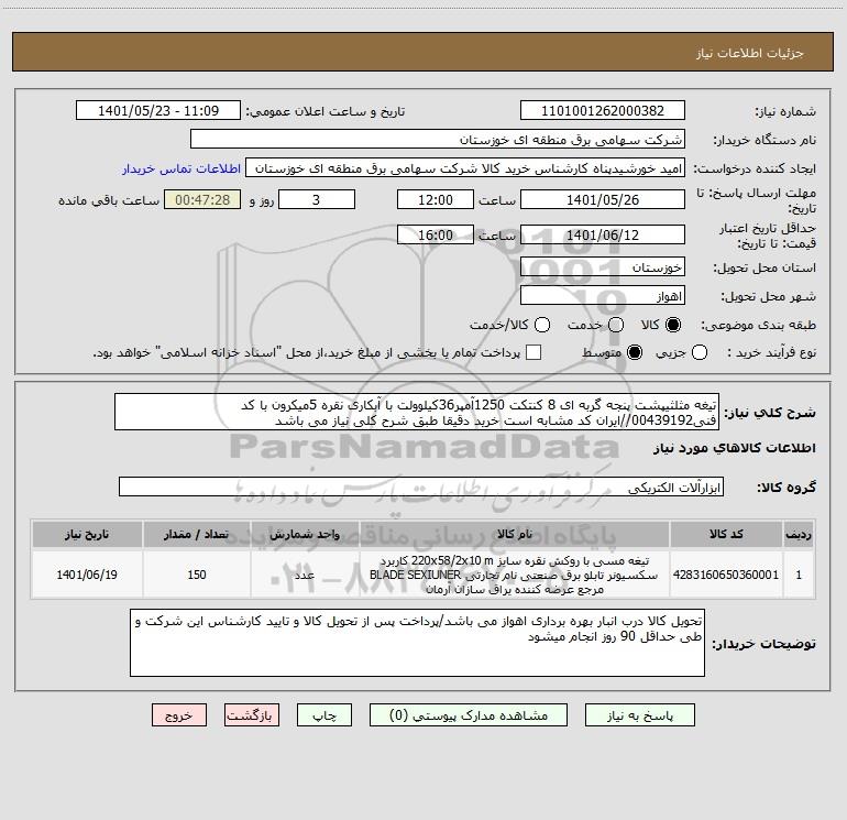 نام دستگاه خریدار:شرکت سهامی برق منطقه ای خوزستان
