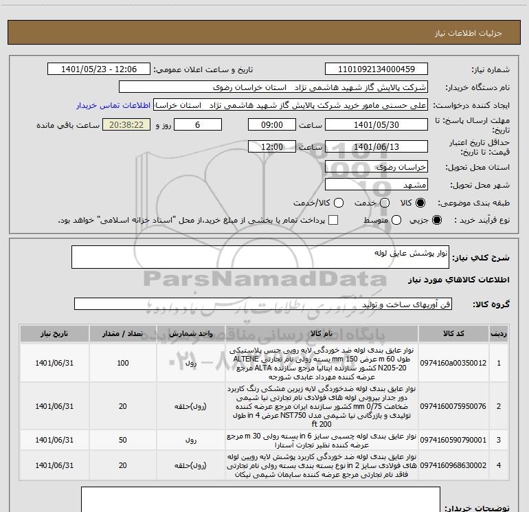 نام دستگاه خریدار:شرکت پالایش گاز شهید هاشمی نژاد استان خراسان رضوی