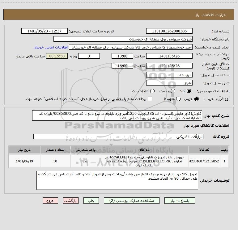 نام دستگاه خریدار:شرکت سهامی برق منطقه ای خوزستان