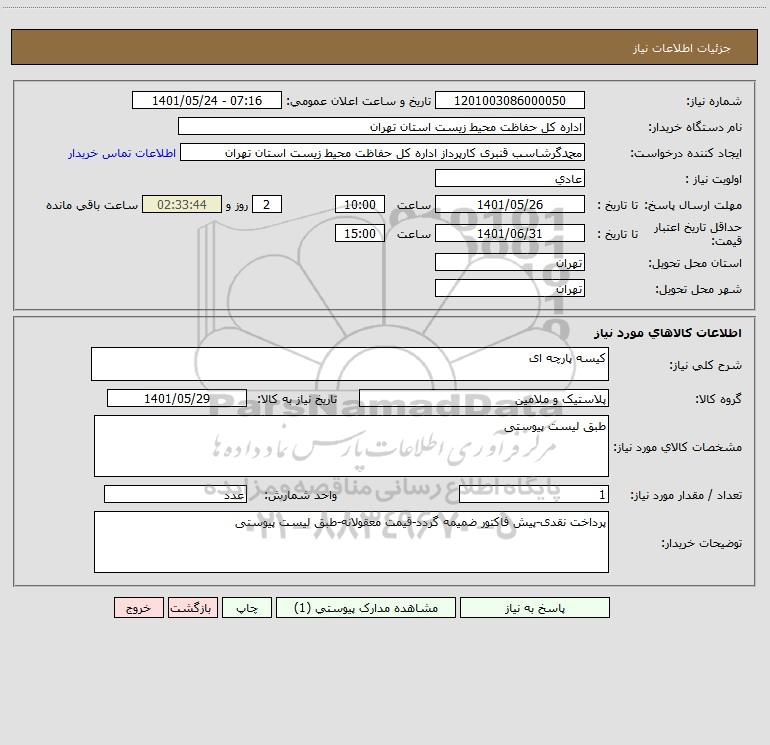 نام دستگاه خریدار:اداره کل حفاظت محیط زیست استان تهران