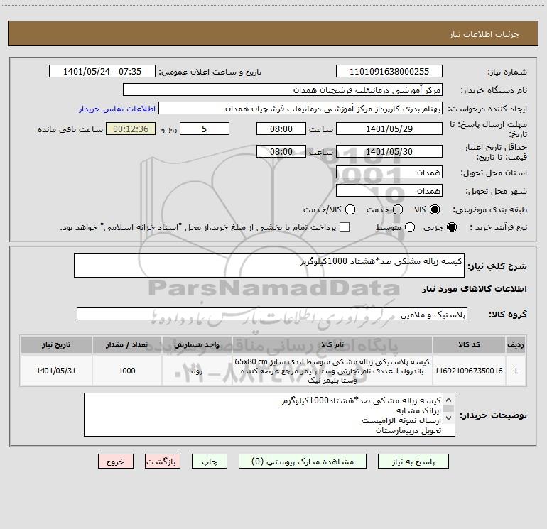 شرح کلی نیاز: کیسه زباله مشکی صد*هشتاد 1000کیلوگرم