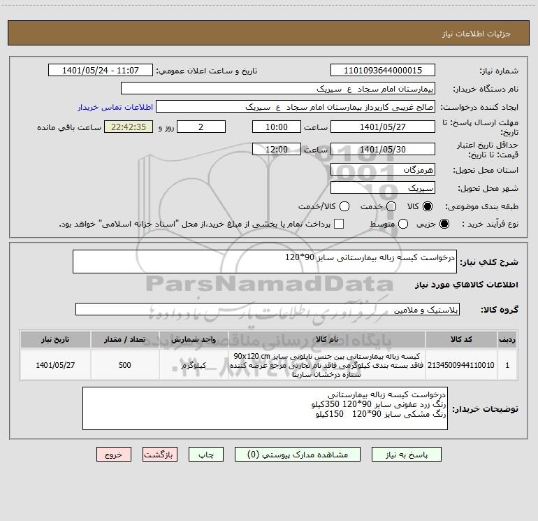 استعلام درخواست کیسه زباله بیمارستانی سایز 90*120, استعلام درخواست کیسه زباله بیمارستانی سایز 90*120
