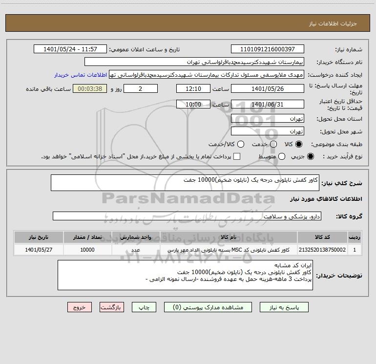 | 1 | 2132520138750002 | کاور کفش نایلونی کد MSC بسته نایلونی الداد مهر پارس | عدد | 10000 | 1401/05/27 |