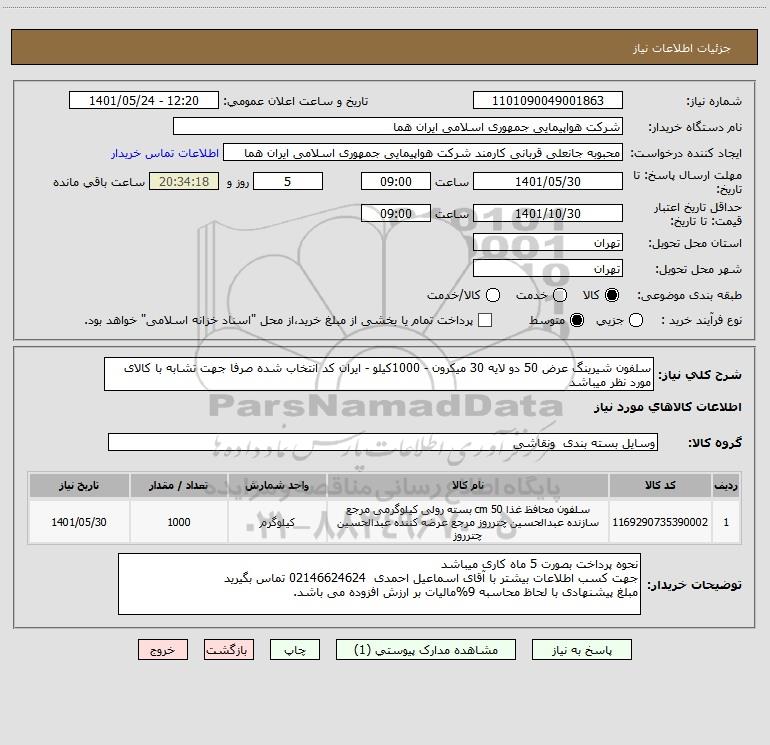 استعلام سلفون شیرینگ عرض 50 دو لایه 30 میکرون - 1000کیلو - ایران کد انتخاب شده صرفا جهت تشابه با کالای مورد نظر میباشد, استعلام سلفون شیرینگ عرض 50 دو لایه 30 میکرون - 1000کیلو - ایران کد انتخاب شده صرفا جهت تشابه با کالای مورد نظر میباشد