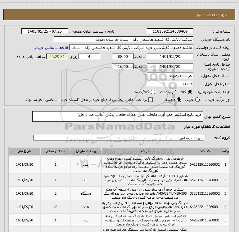 نام دستگاه خریدار:شرکت پالایش گاز شهید هاشمی نژاد استان خراسان رضوی