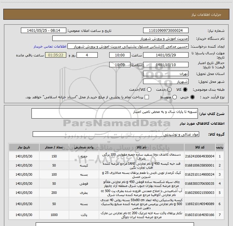 نام دستگاه خریدار:مدیریت اموزش و پرورش شهریار