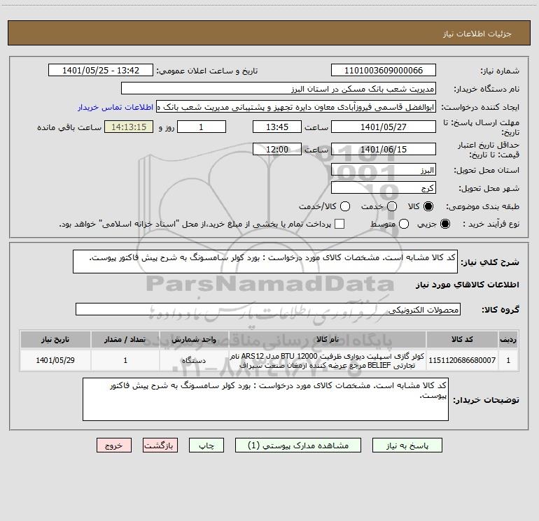 نام دستگاه خریدار:مدیریت شعب بانک مسکن در استان البرز
