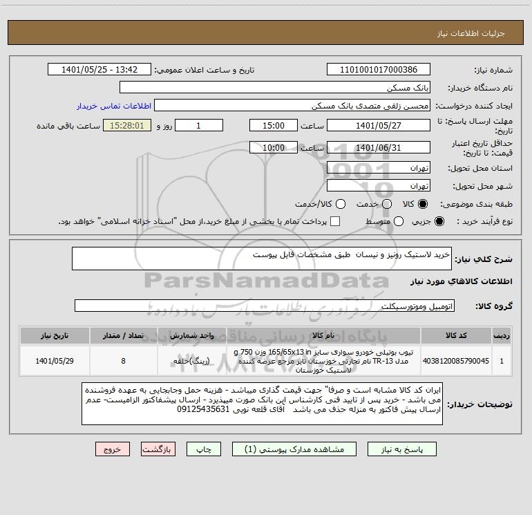 شرح کلی نیاز: خرید لاستیک رونیز و نیسان طبق مشخصات فایل پیوست