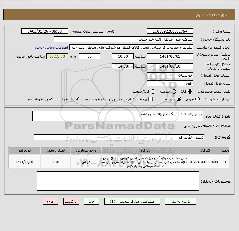 نام دستگاه خریدار:شرکت ملی مناطق نفت خیز جنوب