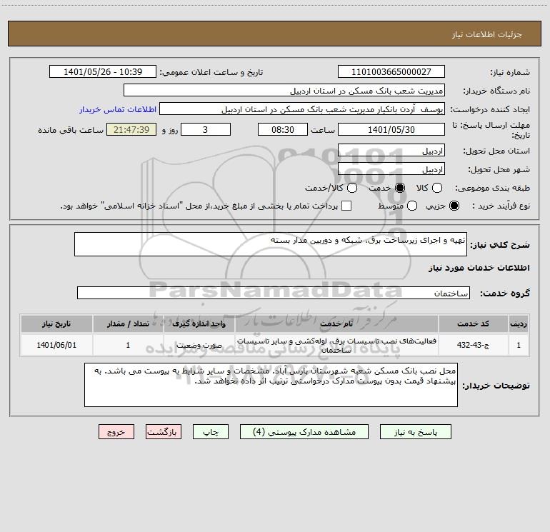 نام دستگاه خریدار:مدیریت شعب بانک مسکن در استان اردبیل
