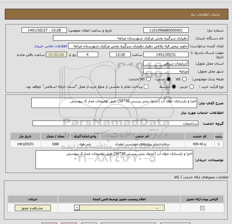 استعلام اجرا و بازسازی جوی آب (جدول بتنی پرسی 30*50) طبق توضیحات مدار ک پیوستی, استعلام اجرا و بازسازی جوی آب (جدول بتنی پرسی 30*50) طبق توضیحات مدار ک پیوستی