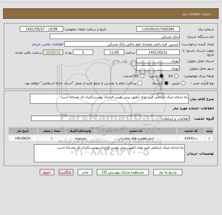 توضیحات خریدار:راه اندازی لینک ارتباطی فیبر نوری (طبق پیش نویس قرارداد پیوست)ایران کد مشابه است