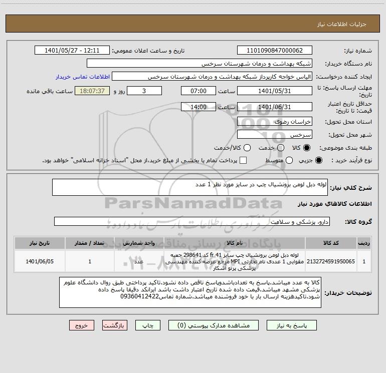 نام دستگاه خریدار:شبکه بهداشت و درمان شهرستان سرخس