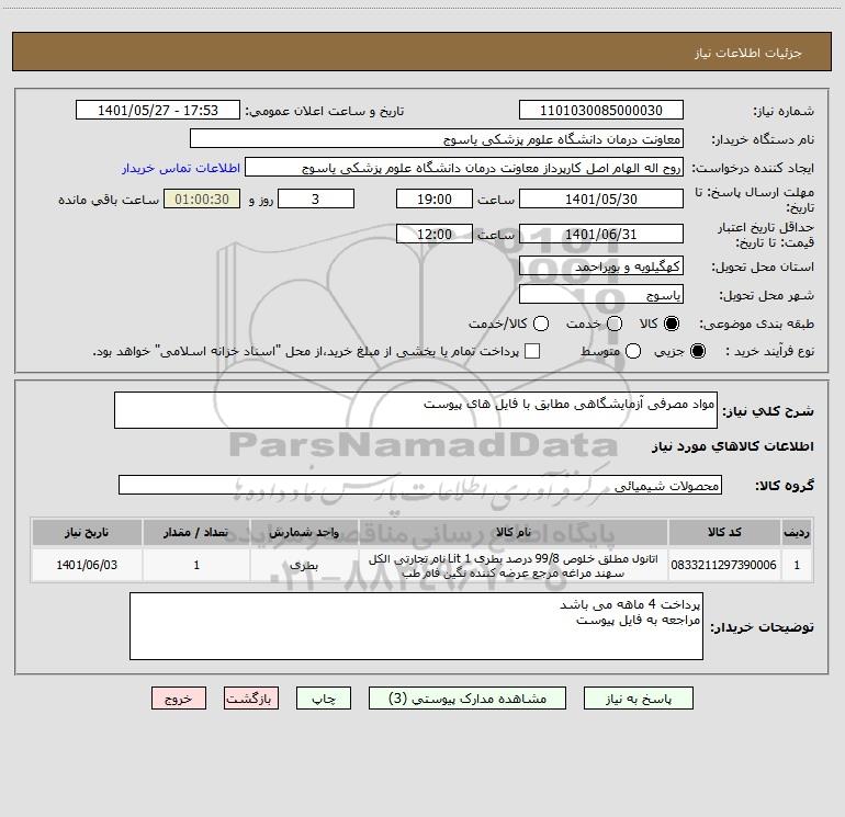 نام دستگاه خریدار:معاونت درمان دانشگاه علوم پزشکی یاسوج